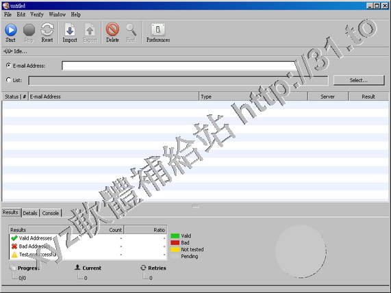 Email Verifier 是一個Email郵件列表效驗工具,支援.TXT,.HTML, .ADR, .LST, .CSV等多種郵